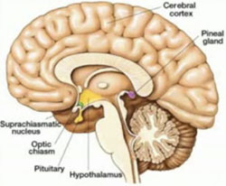 Her şeyden önce beyin epifizi bir salgı bezi ve bir kaç hormon salgılıyor ama en önemlisi melatonin, yani büyüme hormonu.